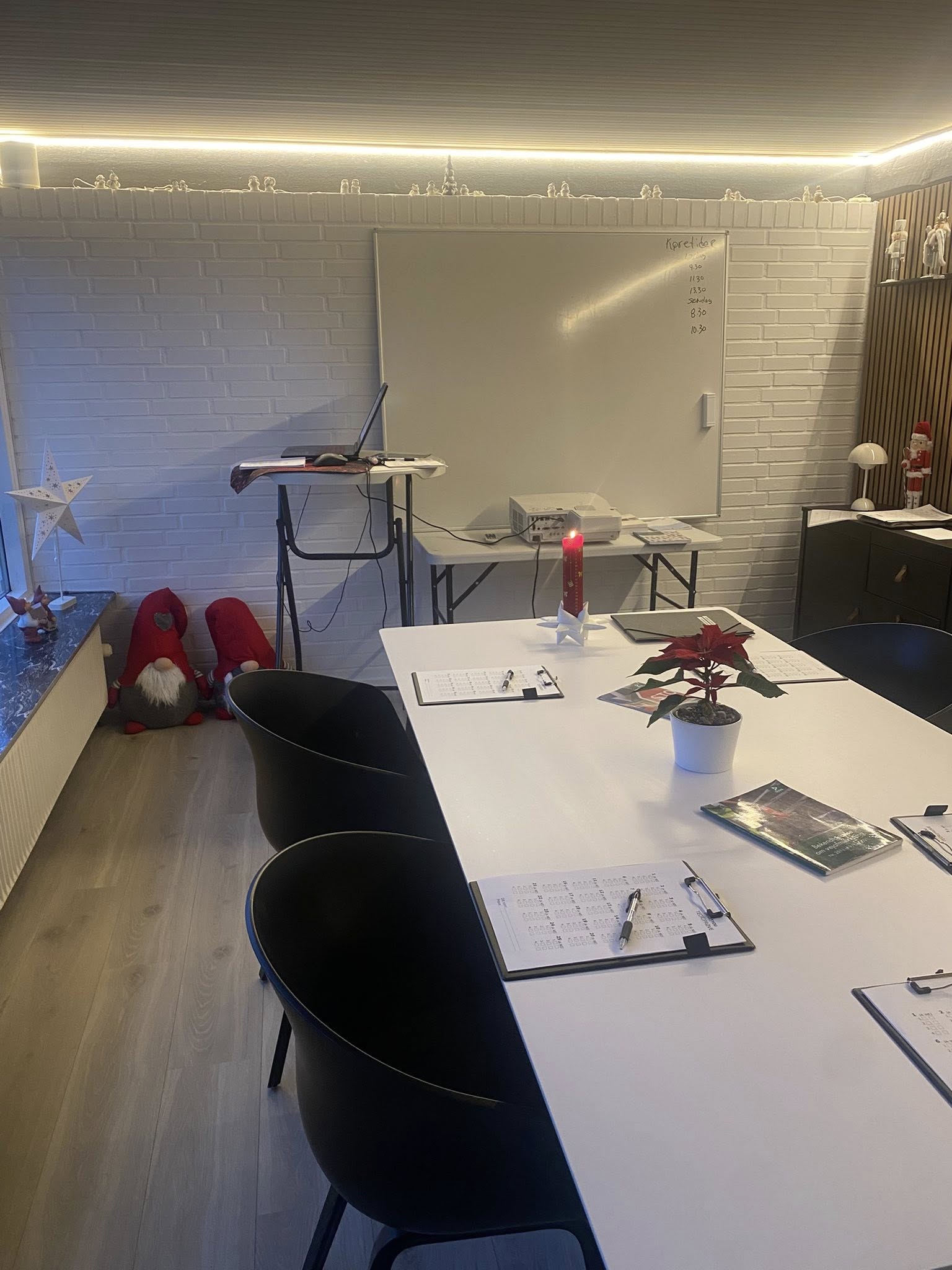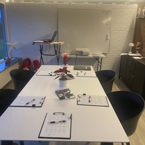 Vi tilbyder lyse, rummelige og veludstyrede teorilokaler, hvor der er plads til både fordybelse og spørgsmål. Her skaber vi et roligt og hyggeligt miljø, så du kan koncentrere dig om at lære – uden stress.